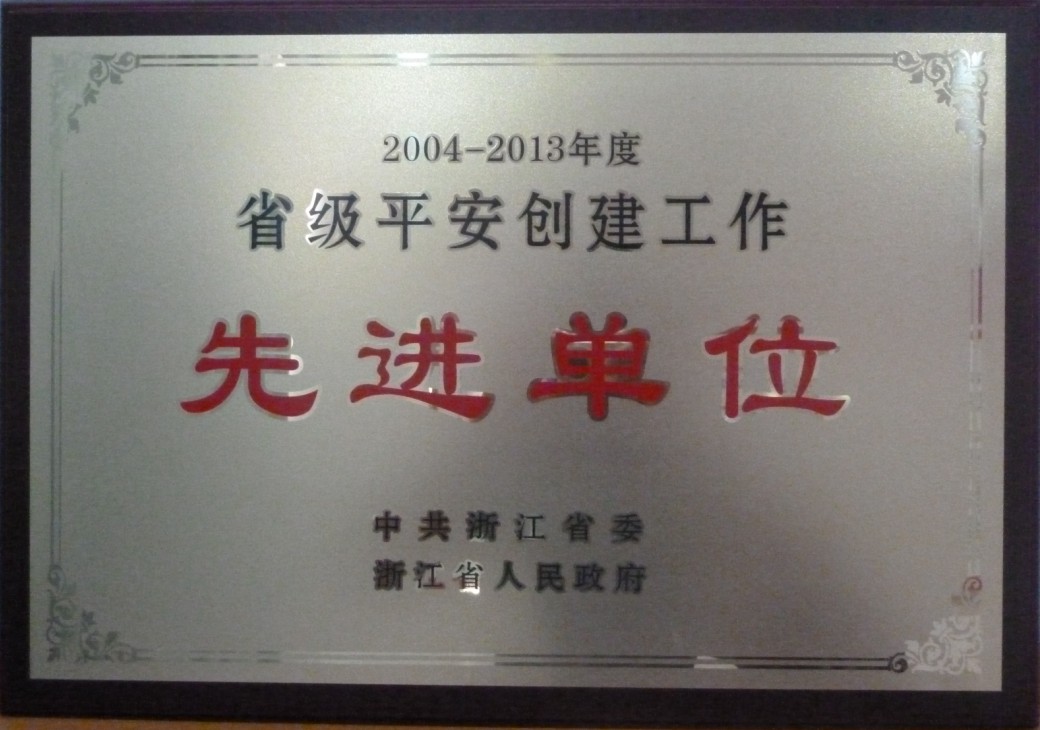 2013-2014年度浙江省平安創(chuàng)建先進(jìn)単位當(dāng)選