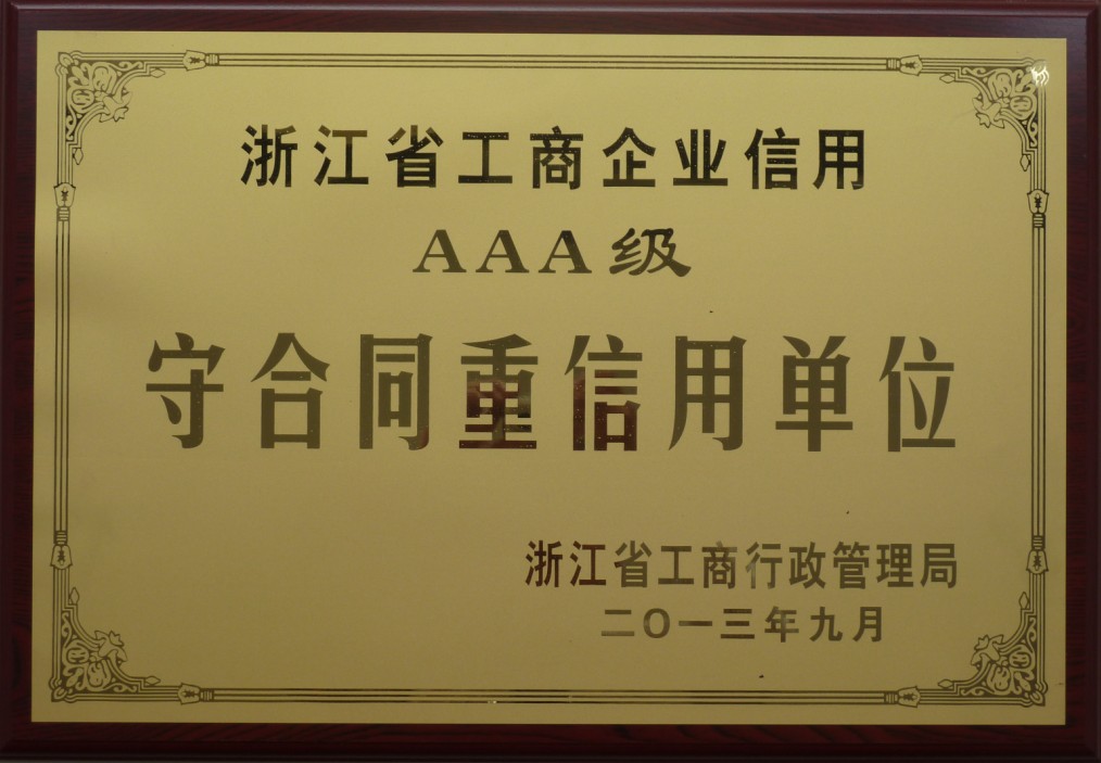 浙江省工商企業(yè)信用AAA級単位當(dāng)選