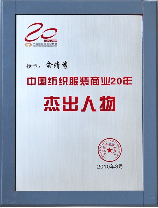 中國紡織服裝商業(yè)20年傑出人物入賞